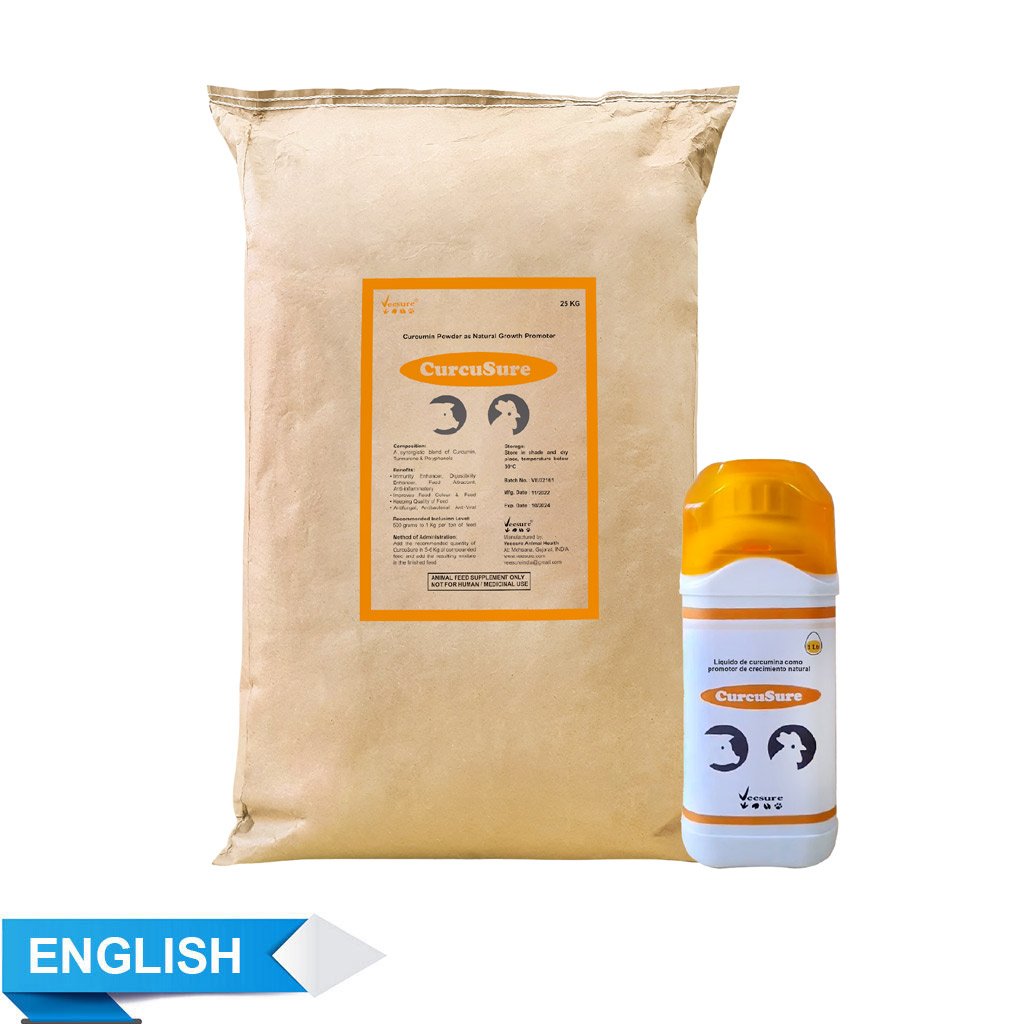 Curcusure is curcumin fortified with Curcuminoids. Turmeric (Curcuma longa) is a rhizome herb belonging to the Zingiberaceae (Ginger) family. The active substances is Curcumin, Curcuminoids, Aromatic turmerones and alpha and beta turmerones. Curcuminoids have a wide spectrum of biological activities including immunity enhancer, feed attractant, maintain feed quality, antioxidant, anti-bacterial, anti-fungal, anti-protozoal, anti-viral.