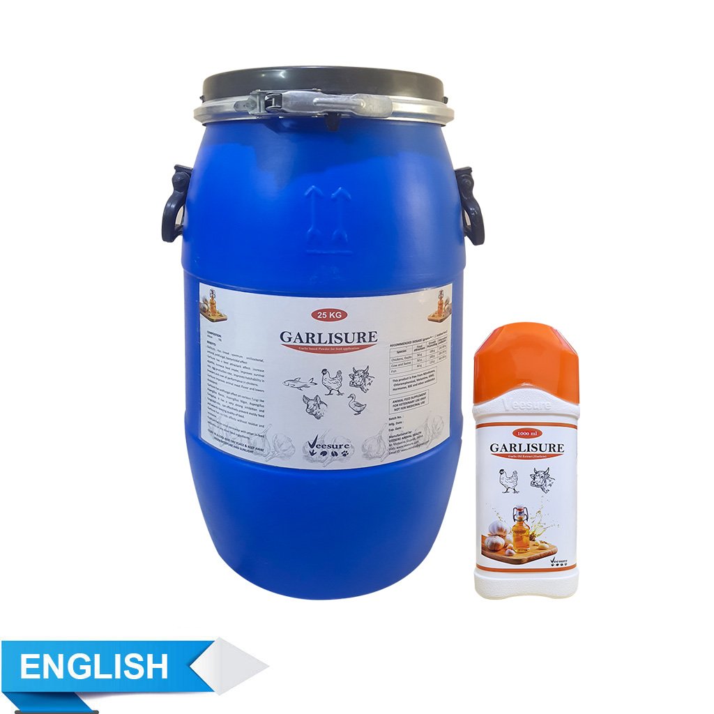 Garlisure works by inhibiting glycoprotein and cysteine protease enzyme, also by enhancing the immunity of animals including excellent antioxidant properties. Allicin- A key phyto-active sulphur containing compound found in garlic consisting immune-boosting,antimicrobial, antioxidant, and performance-enhancing properties.