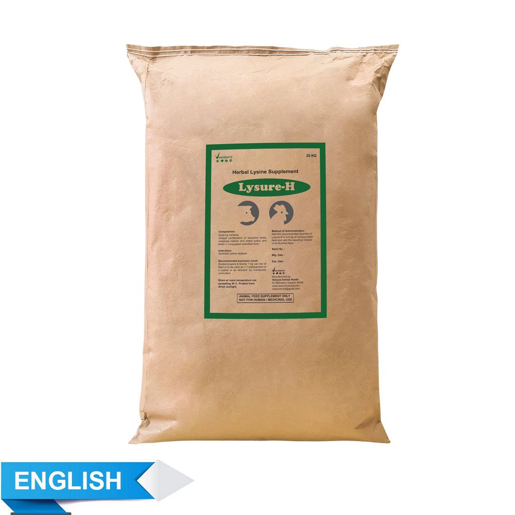 Lysure-H developed from some specially selected plant materials with high lysine activity, harmoniously meets increased requirements of lysine in modern age poultry and livestock.